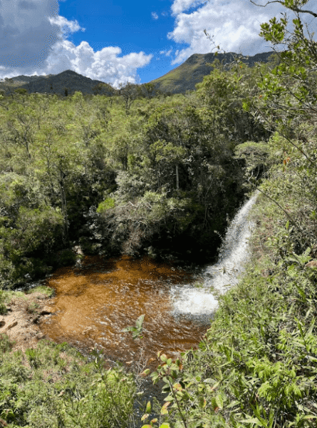Cachoeira Ouro Fino, a trilha terá uma subida de 400 metros que pode ser desafiadora para uma pessoa sedentária, depois uma descida, onde ficaremos por mais tempo, para curtir e descansar.