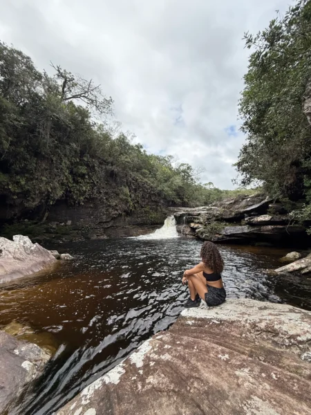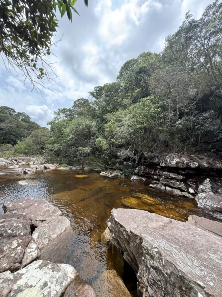 Iremos na cachoeira Peixe Cru primeiro, trilha de 2km no total, trecho dentro da mata e sem subidas e descidas exigentes.