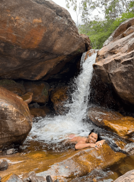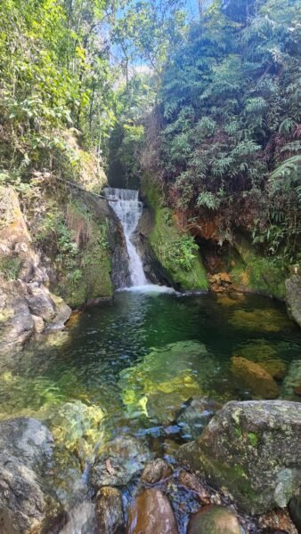 Depois de visitar a cachoeira, faremos uma parada em um mirante e continuaremos a caminhada até chegarmos na cachoeira da Santa. Ela possui águas claras, com uma queda de aproximadamente 10 metros.
