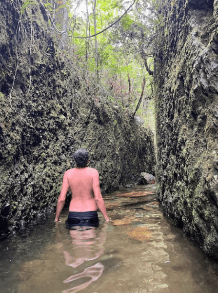 🥾 No início da caminhada, vamos para a cachoeira Maquiné, que possui algumas quedas e um poço pequeno e fundo, além de vários outros poços pequenos.