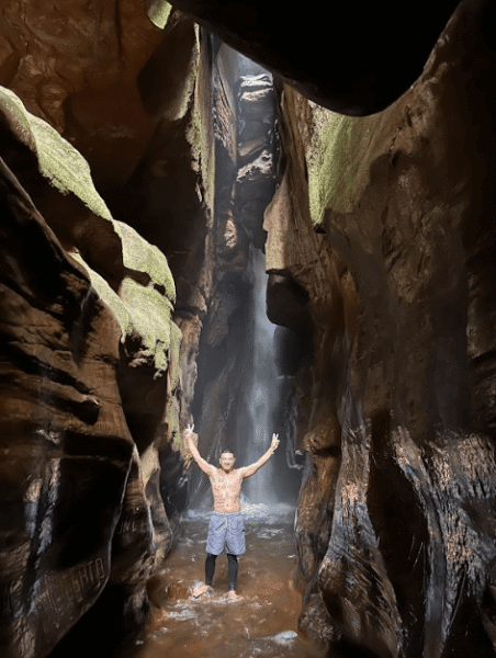 Nosso dia começa explorando a Cachoeira das Andorinhas, uma das mais famosas da região por sua formação única. Sua queda d’água de aproximadamente 10 metros acontece no interior de uma formação rochosa que lembra uma gruta. Durante a primavera e o verão, andorinhas buscam abrigo no local, dando nome à cachoeira.